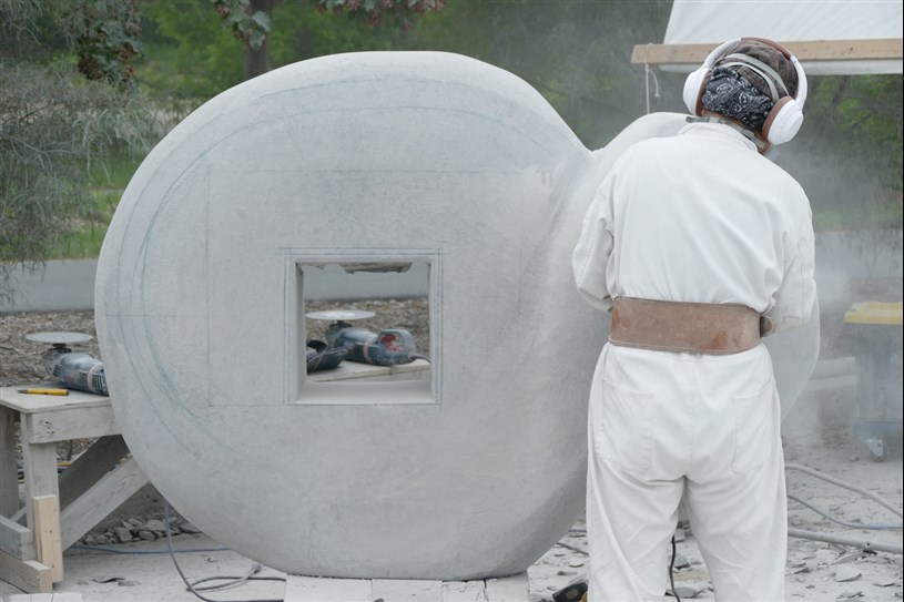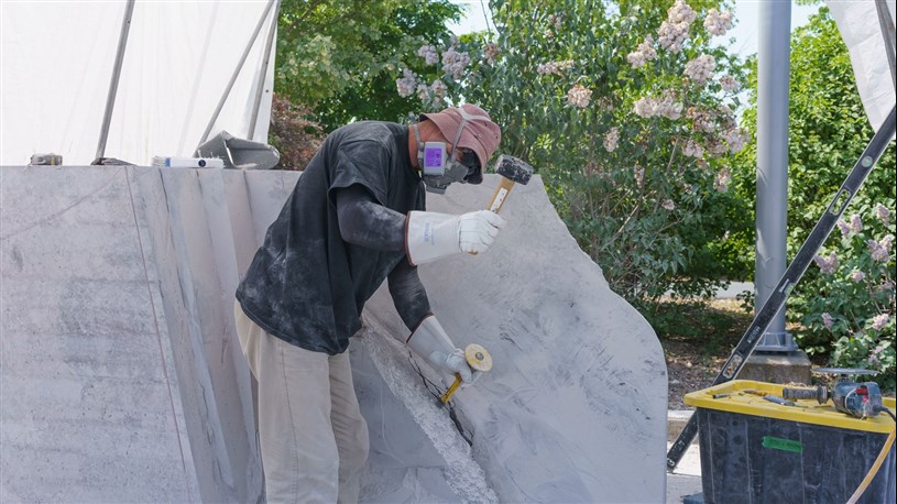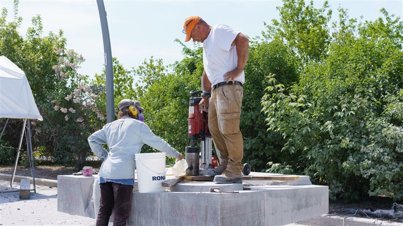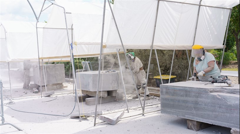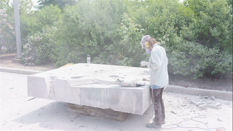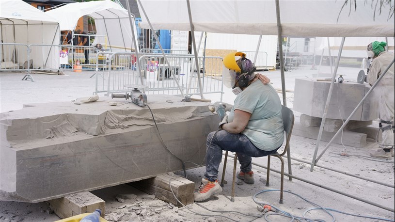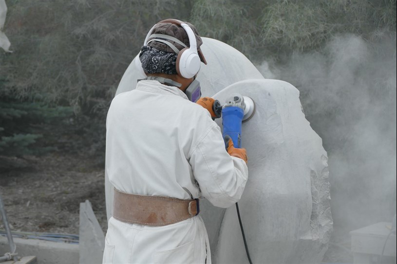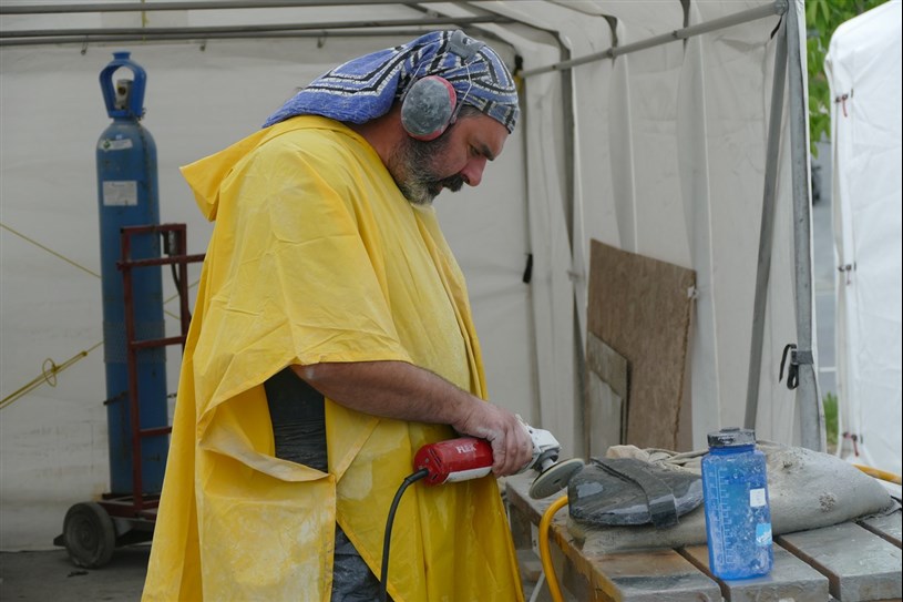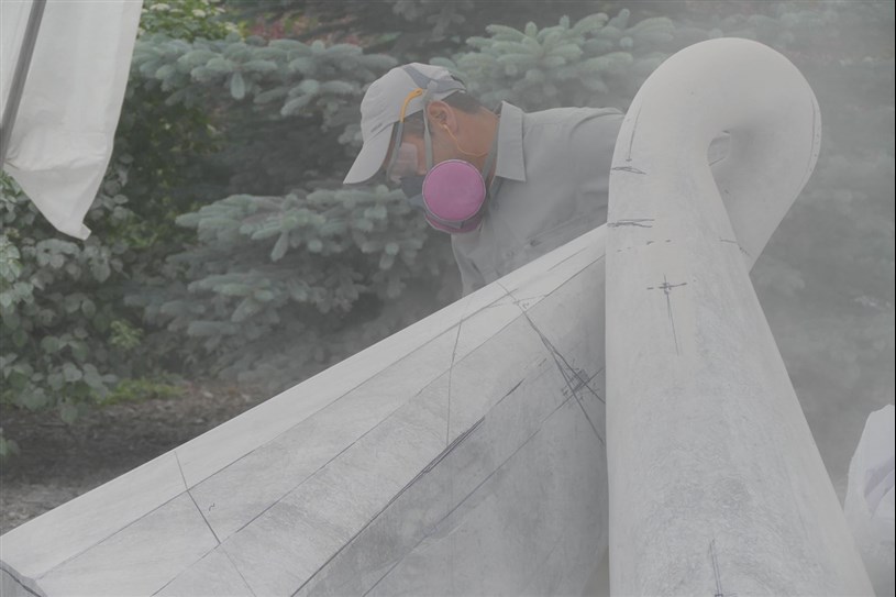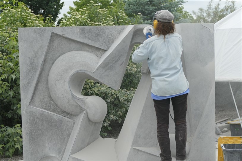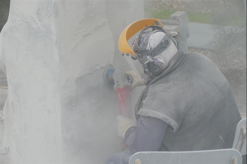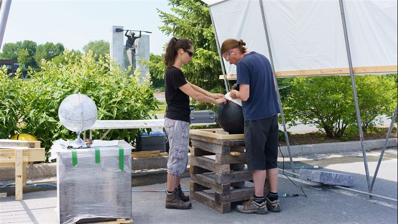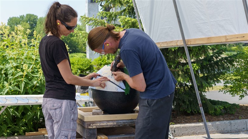 Les artistes à l'oeuvre dans le cadre du dernier Symposium international de la sculpture de Beauce art à Saint-Georges achèvent leur travail.