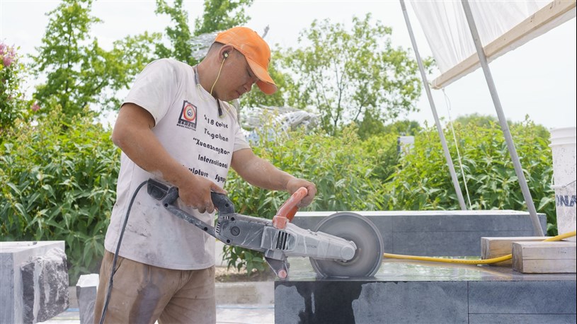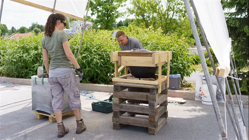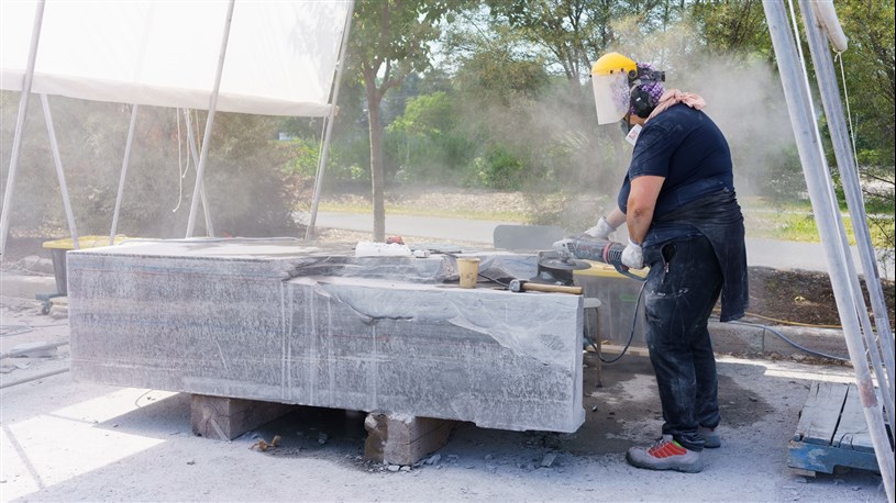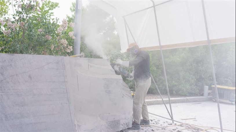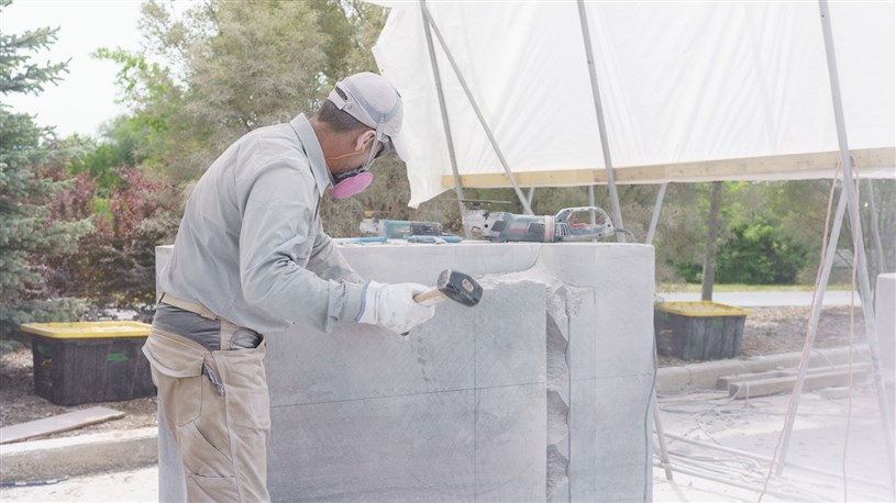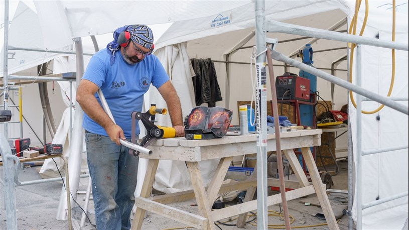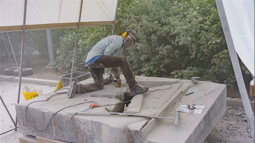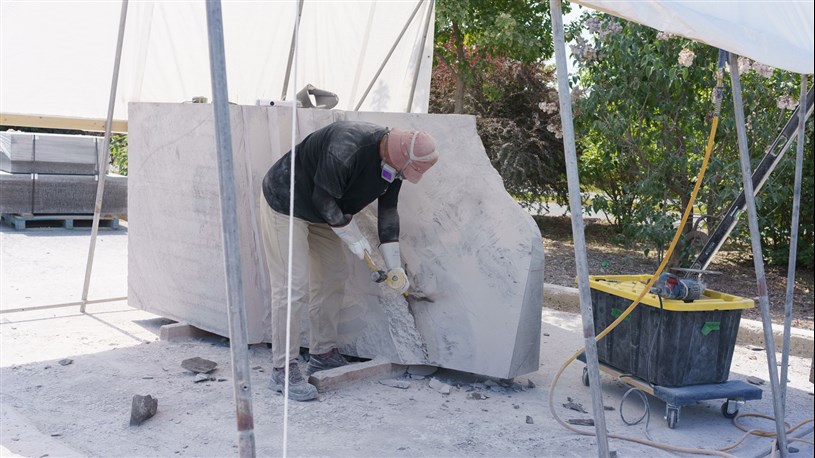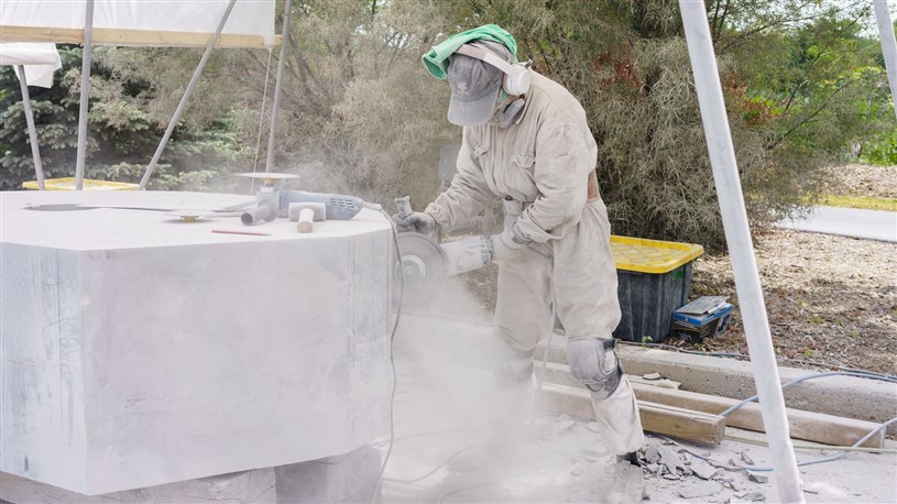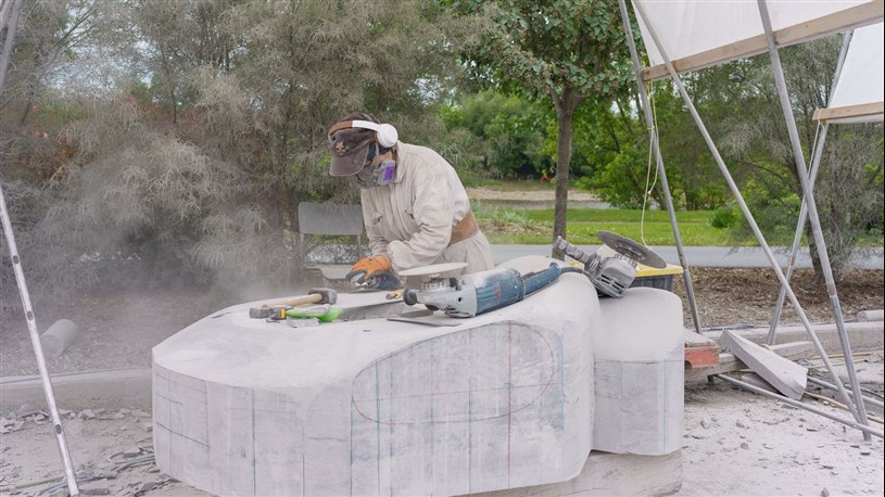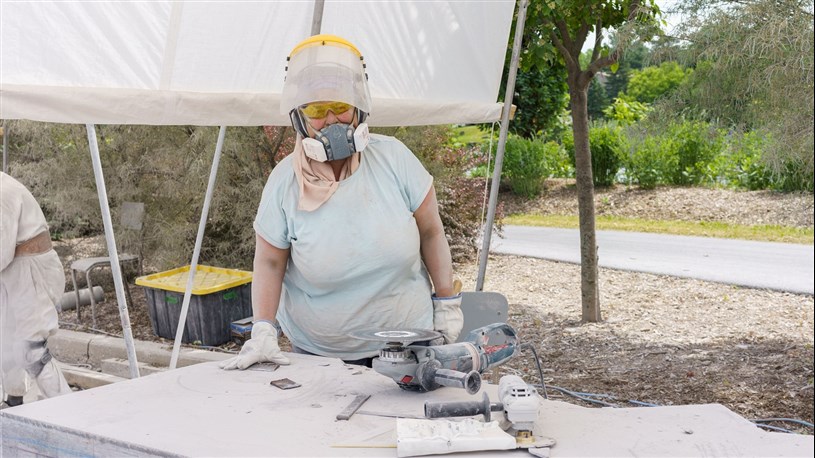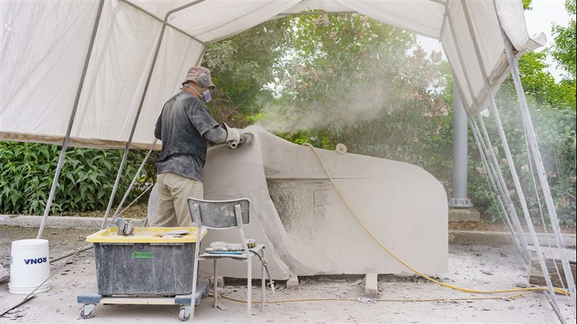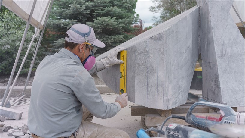 Les artistes à l'oeuvre dans le cadre du dernier Symposium international de la sculpture de Beauce art à Saint-Georges achèvent leur travail.