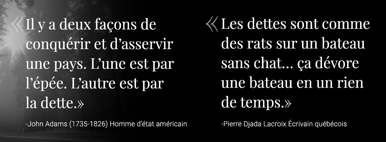 Dès cette année, les seuls intérêts sur la dette actuelle totalisent 55 G$. Il s’agit là d’argent qui se retrouvera dans les poches de celles et ceux qui ont accepté de prêter de l’argent au Gouvernement sous diverses formes. Imaginez tout ce que l’on pourrait faire en une seule année avec 55 G$.