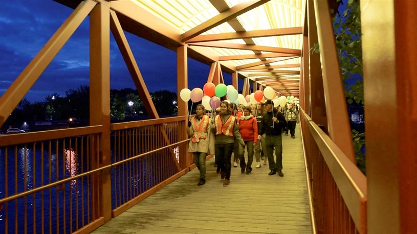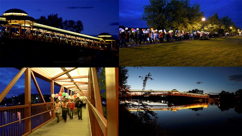 Mercredi soir, à Saint-Georges, les passerelles et l'île Pozer ont accueilli la 20e édition de la marche aux flambeaux, traditionnellement organisée le 21 juin pour célébrer la journée la plus longue de l'année. Entre 150 et 200 personnes sont venues participer à l'activité durant cette édition, au cours de laquelle les torches habituelles ont laissé place à des ballons lumineux aux allures festives, ayant paré les rives de la Chaudière de couleurs scintillantes.