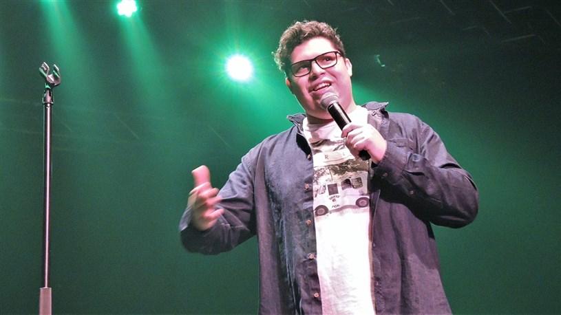 L'humoriste Jacques Fortin, de Sainte-Marie, a remporté le prix Coup de coeur du public à la finale locale de Cégeps en spectacle, à Saint-Georges, lors du mercredi 31 janvier 2018.