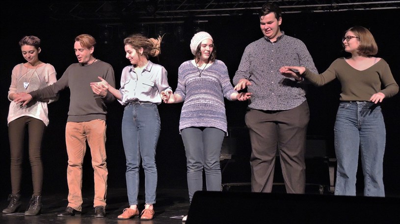 L'équipe d'animation qui a diverti la foule pendant la finale locale de Cégeps en spectacle, à Saint-Georges.