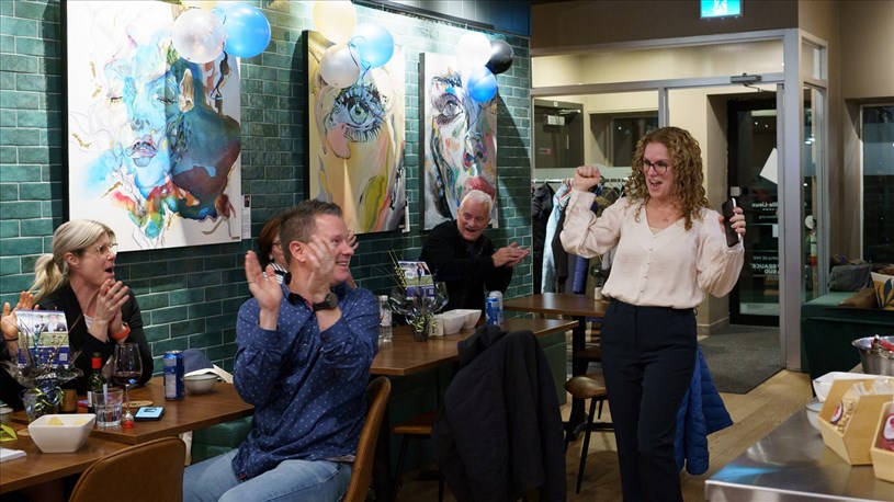 « C’est vraiment une belle expérience, je suis très contente », a-t-elle confié lors de sa soirée électorale au Café du Mille-Lieux. « J’étais confiante, ça allait bien sur le terrain! »