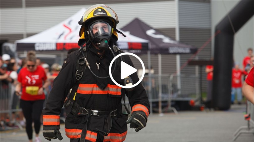 Le Beauceron Alexandre Béland Ouellette a couru 10 kilomètres avec son équipement de pompiers lors de l’événement Courir St-Gédéon ce samedi.