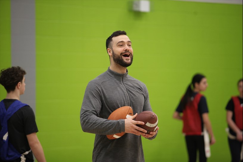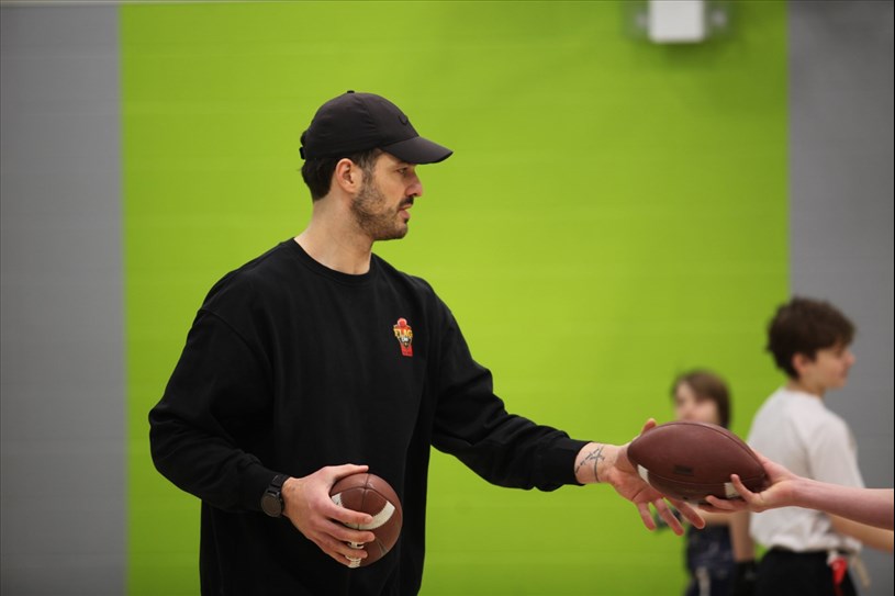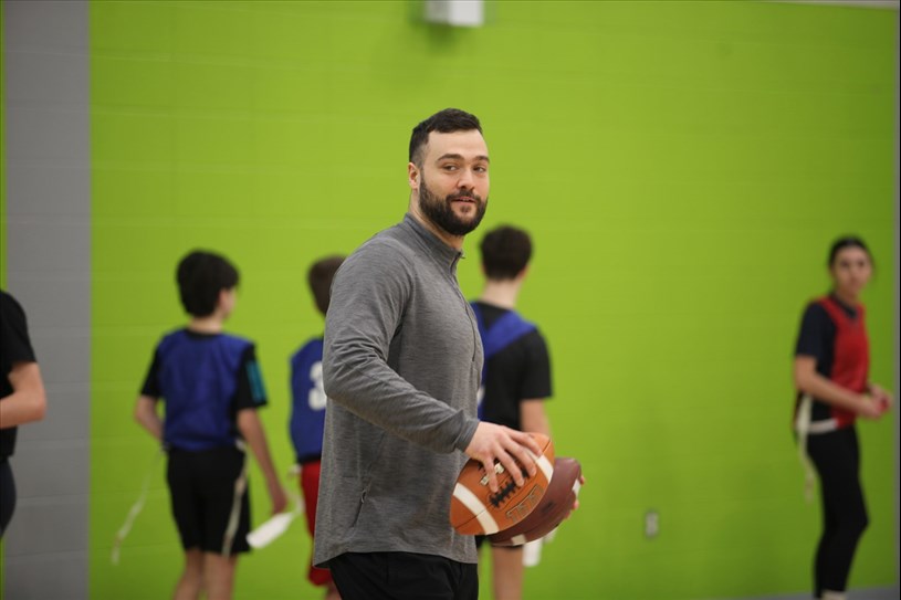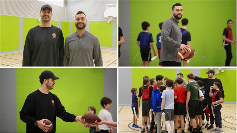 Pendant près de deux heures, les deux Beaucerons ont partagé les bases techniques du flag football, tout en mettant l’accent sur le plaisir et l’activité physique. « C’est une petite initiation au flag football. Et on voulait montrer aux jeunes un petit peu des techniques associées au flag football, mais aussi simplement les faire bouger. Et on pense que c’est important de redonner à la communauté de Notre-Dame-des-Pins. Donc, en cette fête du centenaire, on pense important de venir donner du temps », explique Adam Auclair.