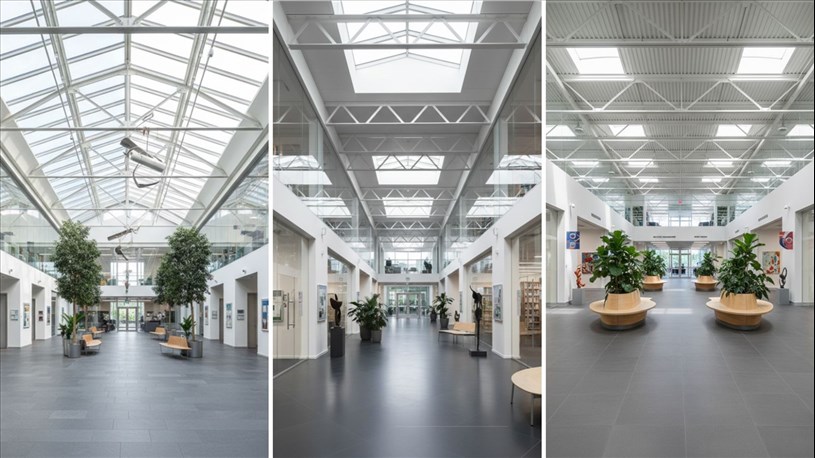 Trois scénarios possibles d'aménagement de l'atrium intérieur.