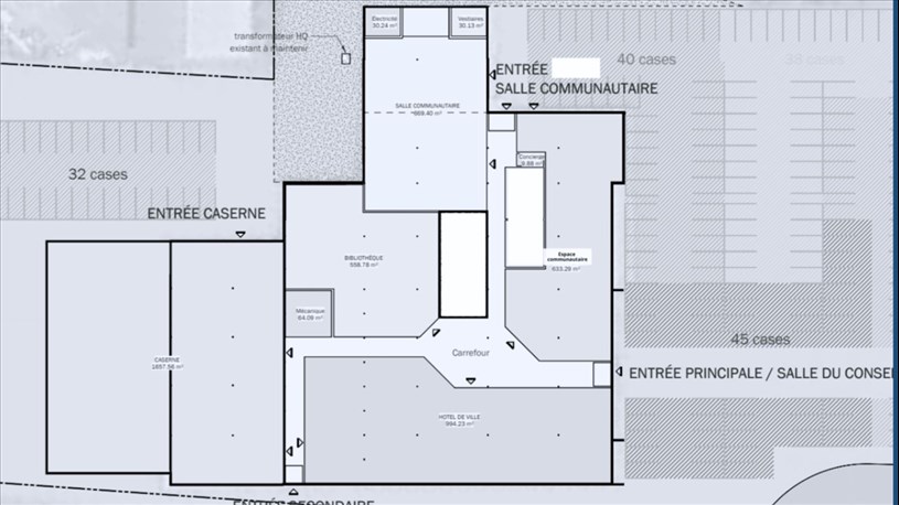 L'édifice sera divisé en cinq sections pour accueillir l’hôtel de ville, la bibliothèque Madeleine-Doyon, la caserne de sécurité incendie, une salle multifonctionnelle et des locaux et espaces pour les organismes du milieu.