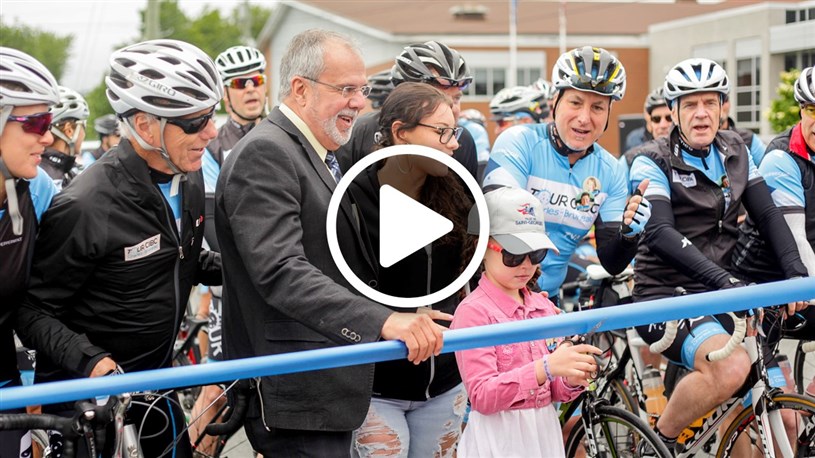 « Il s'agit d'un 22e Tour pour moi, mais la fébrilité et l'émotion y est comme au tout premier. C'est l'engagement des participants, des bénévoles et des familles qui m'émeuvent et me prouvent, encore une fois, qu'ensemble nous pouvons accomplir de grandes choses », a déclaré le chef d'antenne à TVA Pierre Bruneau, porte-parole de la Fondation Charles-Bruneau.