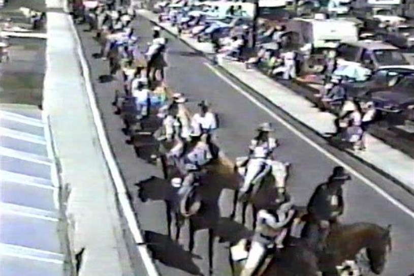 Normand DeLessard présente la parade du Festival Western de Saint-Victor en 1989