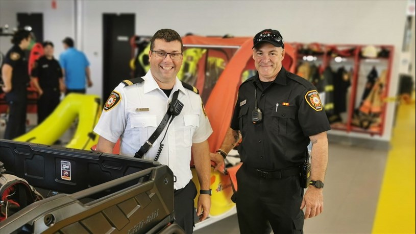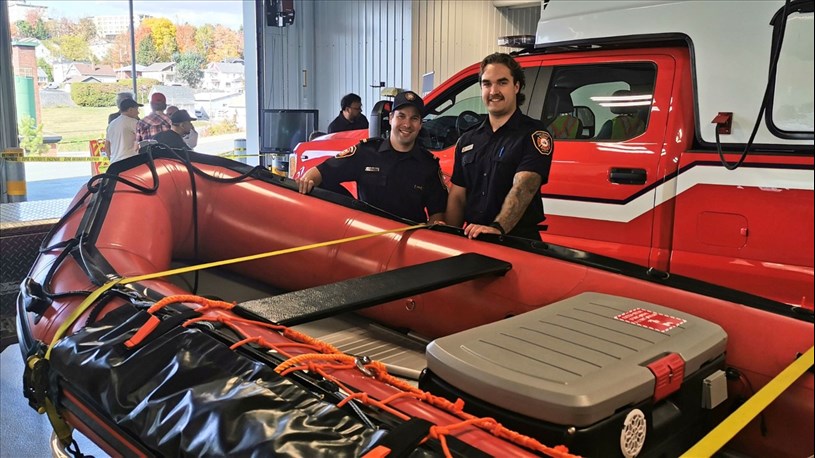 Maxime Beaudoin et Simon Poulin devant les équipements d'intervention sur les plans d'eau.