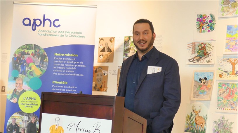 Plus d'une soixantaine de personnes ont assisté aujourd'hui, dans l'enceinte du Musée Marius-Barbeau, au vernissage de l'exposition Créer sans limites, mettant en valeur le talent, la créativité et l’expression artistique de membres de l’Association des personnes handicapées de la Chaudière (APHC).