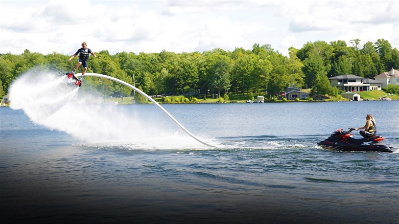 Les amateurs de sensations fortes et de sports aquatiques de la région pourront dorénavant s’adonner au Flyboard. Acquis en 2013 par Johanne Giguère et son frère Stéphane Giguère, propriétaire de Beauce Émondage, l’appareil permet de propulser et de maintenir un individu à plusieurs pieds dans les airs par la puissance d’un jet d’eau.