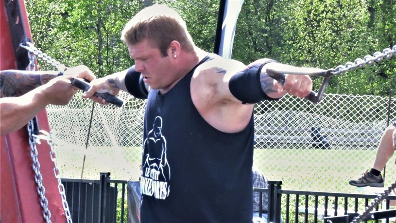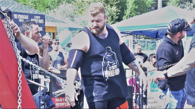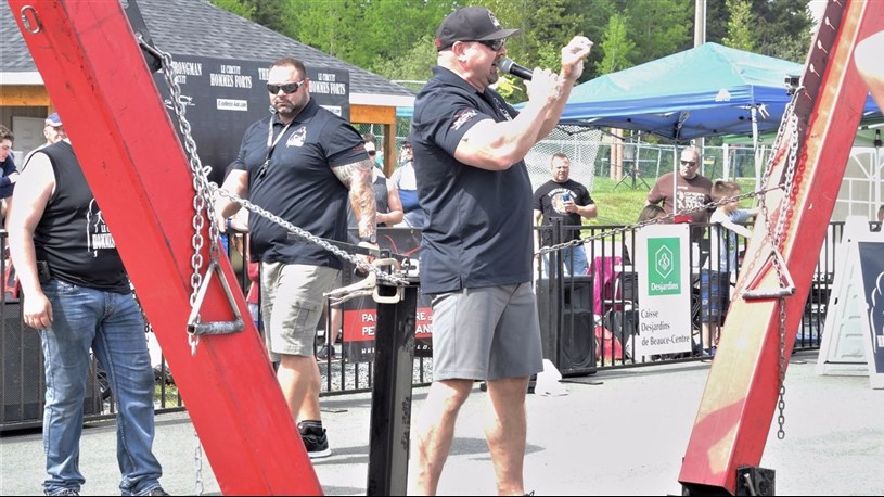 La Compétition provinciale des hommes forts du Québec avait lieu cet après-midi à Saint-Odilon, dans le cadre de la 11e Exposition agricole et forestière de la municipalité.