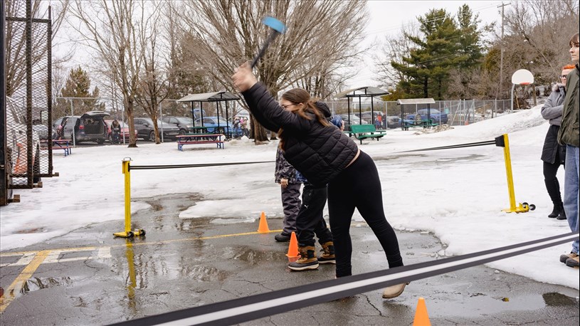 Tire d'érable, jeu gonflable, lancé de hache et tour de calèche étaient au menu pour le rassemblement Tire-toi une bûche. Le tout, en présence de la célèbre mascotte, et ce, pour le plus grand plaisir des enfants.