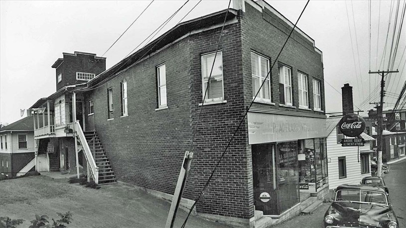 Son fils Roland, qui était déjà gérant, a pris la relève et a ajouté un entrepôt plus haut dans la 130e rue. Tout en continuant d'opérer le magasin, il a été maire de la ville en 1948-1950. Son fils Jacques Veilleux (petit-fils d'Adélard) a été député libéral de St-Jean-sur-Richelieu de 1970 à 1976. Roland a exploité le magasin jusque vers 1958, puis c'est André Guay qui y a installé son commerce d'alimentation (photo 4). La photo illustre la transition entre les deux, puisqu'on y voit encore l'annonce de l'ancien occupant sur la façade, et aussi l'annonce du nouveau sous la publicité de Coke. Examinez bien les écritures dans la vitrine, vous constaterez qu'il y avait aussi dans l'édifice les bureaux de l'assureur La Survivance représentée par M. Fernand Drouin. Cette photo fut prise le 8 août 1959 par Rosaire Gamache.