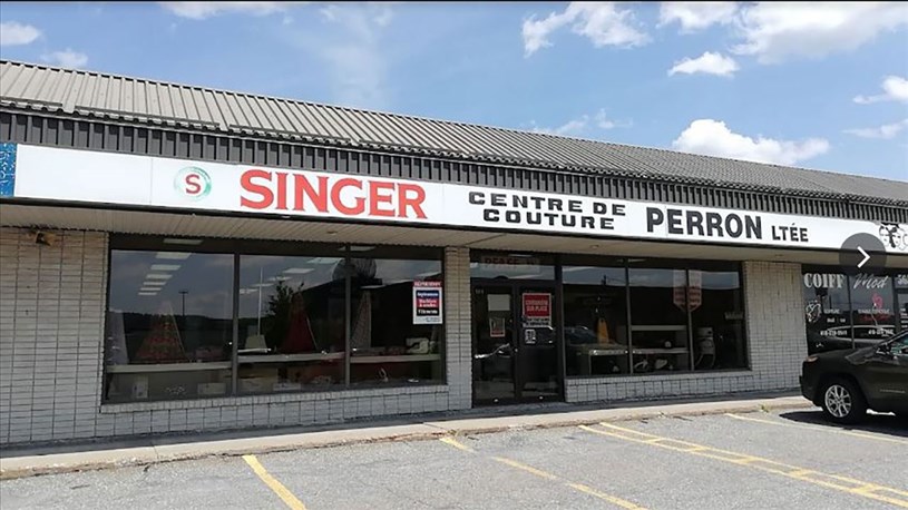 En 1989, ils déménagèrent à Place 90, dans la 90e rue à Saint-Georges. M. Talbot s'est retiré des affaires il y a quelques années, et M. Perron a continué les opérations tout en changeant le nom pour Centre de couture Perron Ltée, avec le logo «Singer» affiché bien en évidence (photo 4). Il est encore aux commandes et reçoit lui-même les clients et clientes depuis 58 ans, toujours aussi enthousiaste. Sa renommée est établie et il est reconnu pour sa compétence et son honnêteté. Son magasin est très achalandé.