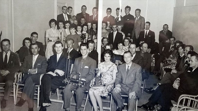 La photo 6 nous rappelle la fameuse salle de quilles à laquelle on accédait par la porte située à droite de l'édifice. Dans les débuts, les «spotteurs» gagnaient 5 cennes par partie. Il y eut des ligues de quille pendant plusieurs années, on compilait les statistiques et on fêtait la fin de la saison (photo 7). Réal Carrier était l'une des étoiles de ce sport dans la région. Dans les années '60, on a ajouté une allée et on remplaça les petites quilles par les grosses.