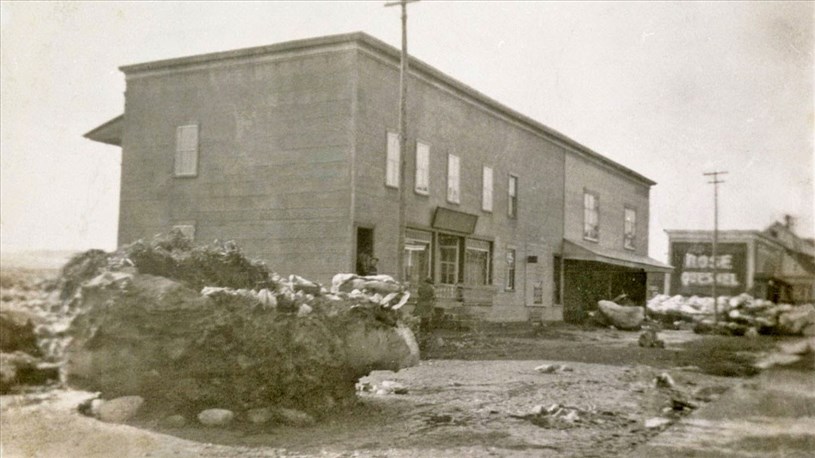 Survint en 1915 le gigantesque incendie qui détruisit plus de 50 maisons, incluant l'hôtel Murtha House. Miraculeusement, l'autre édifice (aujourd'hui le Grand Hôtel) a échappé de justesse à l'incendie et a donc survécu. À l'origine, c'était une maison de chambre au rez-de-chaussée et une salle de «vues animées» au deuxième. Le clergé, qui était omnipuissant à l'époque, s'objecta, et M. Murtha dut réorienter la vocation de son bâtiment. Sa salle a plutôt servi à tenir des réunions diverses, des spectacles, de la danse et même des pièces de théâtre. On le voit à la 3e photo, lors de la débâcle de 1920. Puis Joseph Gagné y a opéré brièvement un magasin général.
