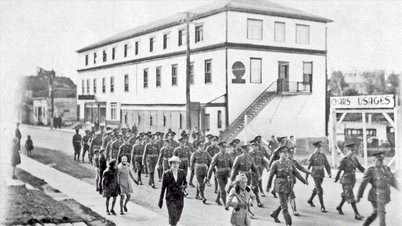On constate une constante évolution et amélioration au cours des ans, comme le démontre la 7e photo, le 24 septembre 1939, lors d'une parade militaire déambulant sur la 1re avenue. Il y a même un vendeur de «chars usagés» situé du côté nord de l'hôtel. Vous vous demandez ce qui se cache derrière les grandes portes en avant, sur la moitié nord de l'immeuble. La réponse se trouve dans la 8e photo: l'une des portes est ouverte et on y aperçoit un véhicule automobile, ce qui signifie que cette section, au rez-de-chaussée, était un garage pour les autos du propriétaire et des clients. La 9e photo, superbe, nous montre l'arrière de l'édifice en 1947, lors de la noce de son fils Romuald qui épousait dame Gertrude Garant. À cette époque, la rivière était près de l'immeuble, au pied du quai de béton. C'étaient les bonnes années.