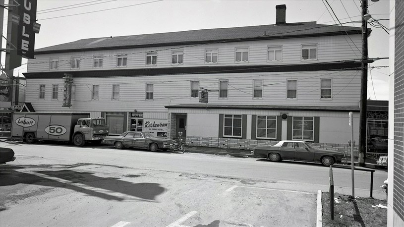 Tout le monde connait cet établissement situé en plein centre-ville, près du pont (photo 1, vers 1975). Le début de cette histoire commence en 1910 lorsque M. Thomas Murtha, construisit un gros édifice blanc, carré et à deux étages près de la rivière. Ce M. Murtha possédait déjà une autre bâtisse imposante située juste en face sur la 1re avenue, soit l'hôtel Murtha House. On les voit bien tous les deux en 1913, à la 2e photo, l'hôtel à gauche et son nouveau bâtiment à droite, carré, blanc et très dépouillé.