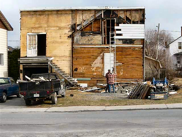 Démolition d'un bâtiment centenaire sur la 20e rue ouest à Saint-Georges. Anciennement 'Antiquaire Pépin'.
