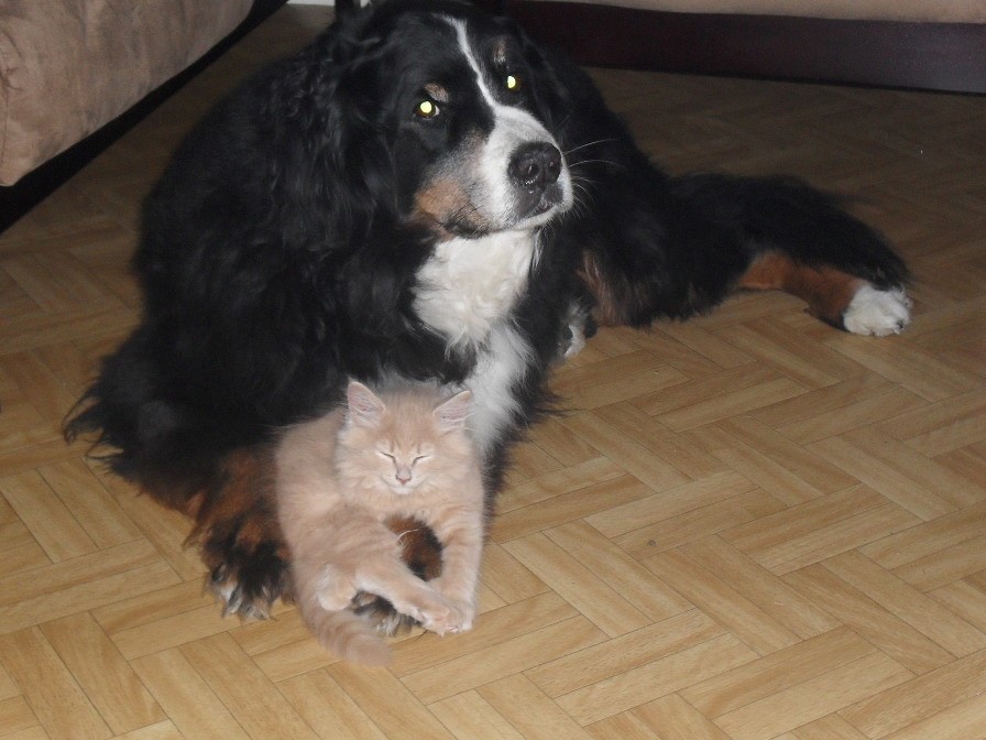 charly 9ans et le petit sammy 9 semaines ,quelle confiance entre david et goliath,tant que sam était couché mon gros nounours ne s,est jamais couché la tete