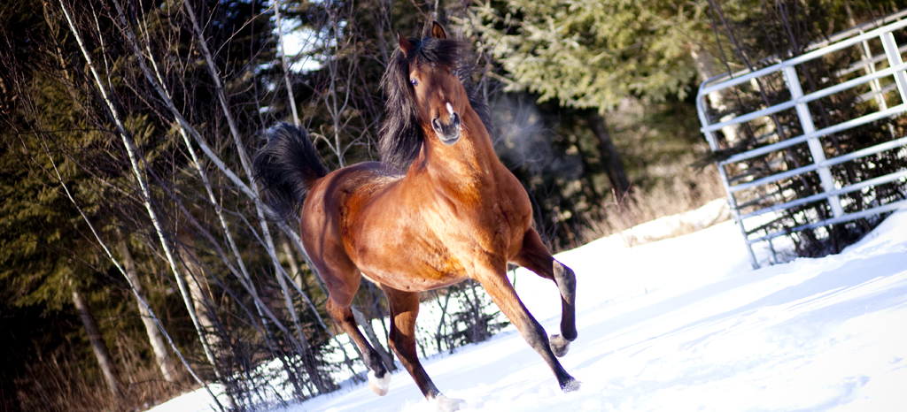 Étalon Arabe qui fait une balade libre a la campagne